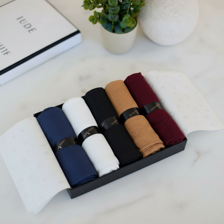 Style meets comfort with our Texture Hijab Pack of 5, featuring soft jersey-style hijabs in classic, wear-anywhere shades. Each piece is breathable, stretchable, and made to keep you effortlessly elegant all day long.